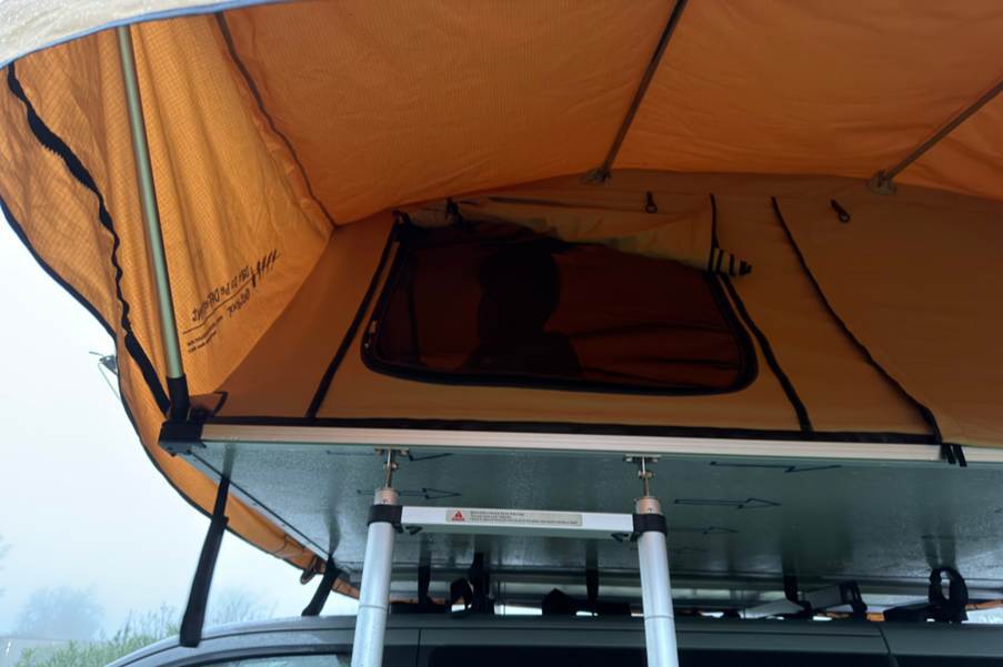 Het gebruik van de daktent is veilig wanneer deze correct op de auto is gemonteerd en op de locatie is opgezet. Voordat u een tent aanschaft, is het belangrijk om de draagcapaciteit van het autodak en de dakdragers te controleren en te kijken of de dragers in goede staat verkeren. Wanneer de tent is opgezet, d.w.z. uitgevouwen, wordt een deel van de belasting gedragen door het dak en wordt de rest gedragen door de ladder.