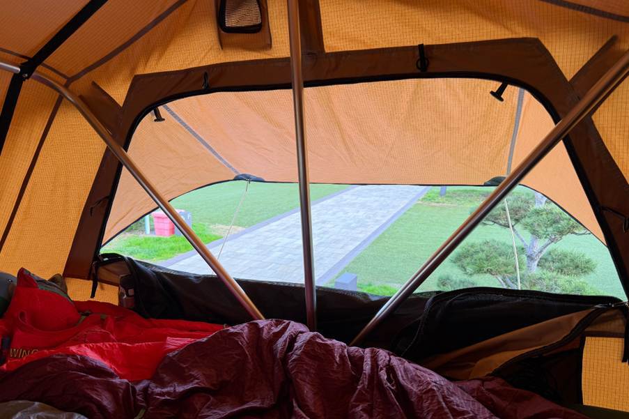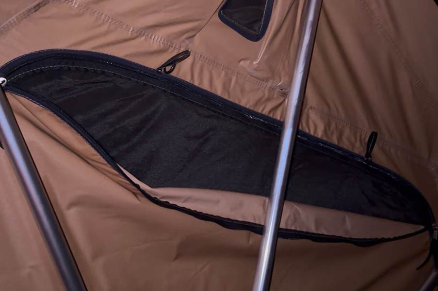 Onze vrolijke groep vindt het altijd comfortabel om in een tent te slapen, omdat het gemakkelijk is om de toevoer van frisse lucht te regelen door de ramen naar behoefte te openen. Het materiaal waarvan de tent is gemaakt, is waterdicht, zoals we tijdens onze laatste reis hebben gezien, toen het hevig regende. Bij lage temperaturen kan er na enkele uren continu verblijf condensatie ontstaan op het tentmateriaal zelf, wat te verwachten is als we met z'n vijven comfortabel in de tent verblijven, maar dit is eenvoudig op te lossen door de ramen open te zetten en de tent een beetje te ventileren. De tent warmt snel op als we erin zitten, dus zelfs bij temperaturen van 7 °C sliepen we met twee tegenover elkaar liggende ramen op een kier om de lucht beter te laten circuleren. Het koelde de ruimte niet significant af en frisse lucht is de meest comfortabele manier om te slapen. Alle ramen hebben hun eigen kleine luifels, dus je hoeft je geen zorgen te maken dat er regen door het raam naar binnen komt en de ruimte in de tent blijft droog en comfortabel.
